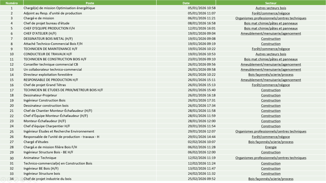 Voici le récapitulatif des offres d'emploi de janvier février 2026. Pour les détails, merci de vous connecter et les consulter dans l'espace offre d'emploi.