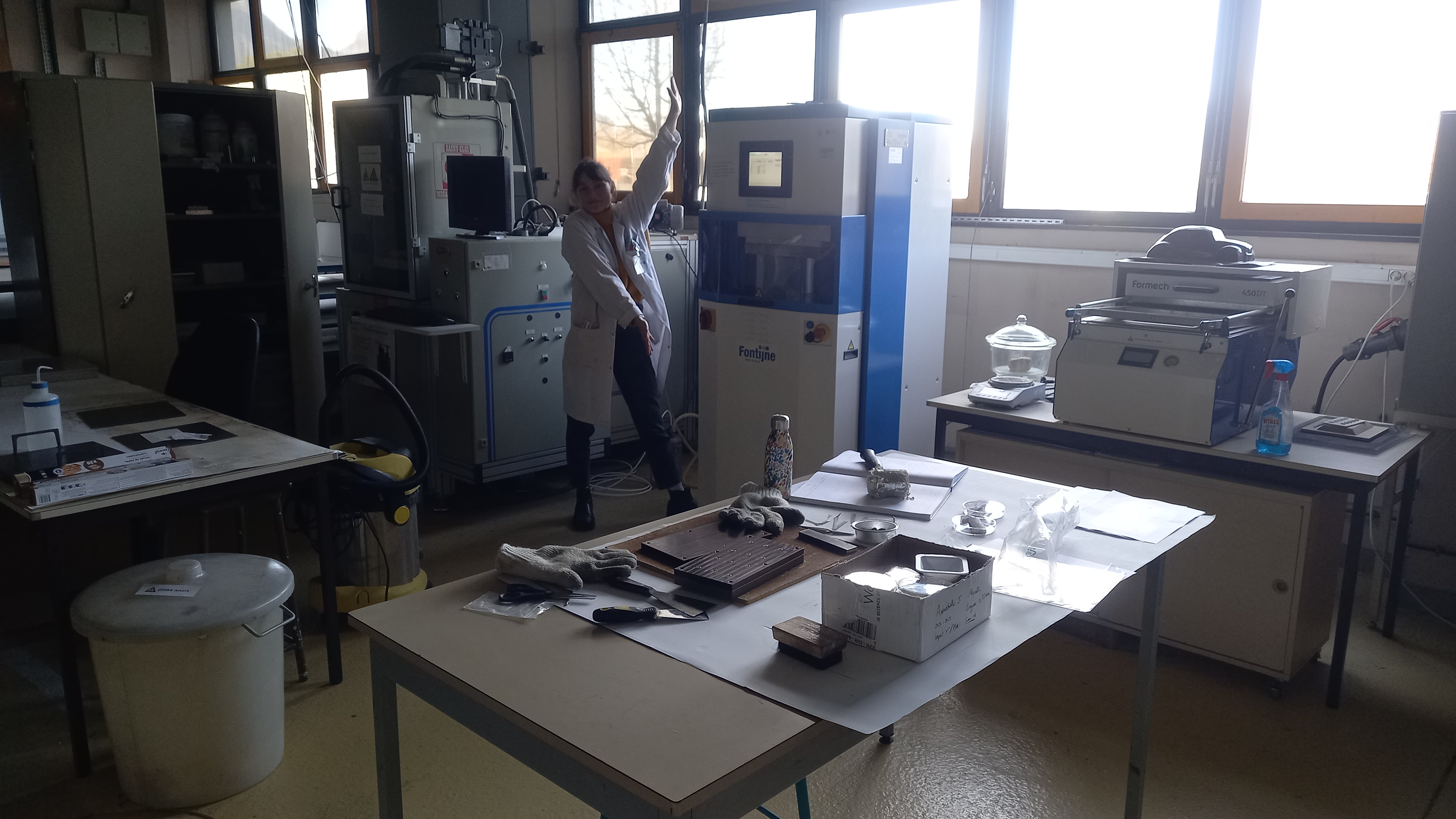 Nous avions rendez-vous à Pagora, l'école d'ingénieur du papier, de la communication imprimée et des biomatériaux à Grenoble, à laquelle le laboratoire où travaille Annabelle est associé. Elle m'a fait visiter les lieux, expliqué le fonctionnement de certains équipements, et nous avons également échangé avec plusieurs doctorants au cours de la journée, qui ont pu nous exposer le sujet de leur recherche. Elle m'a ensuite expliqué l'objet de son travail actuel, les expériences qu'elle menait et les résultats qu'elle cherchait à obtenir. J'ai également pu l'aider à réaliser quelques expériences et réfléchir avec elle aux problèmes rencontrés.
