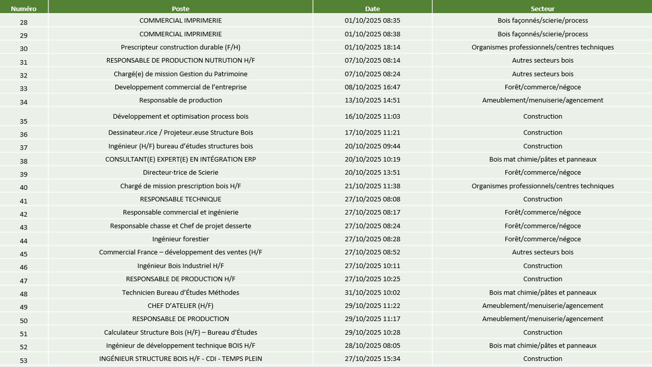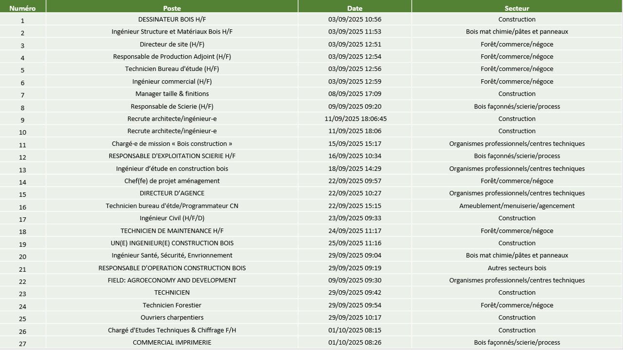 Récapitulatif offre d'emploi septembre octobre 2025